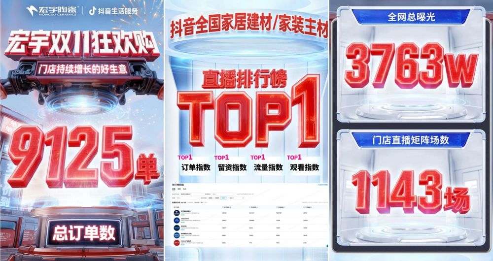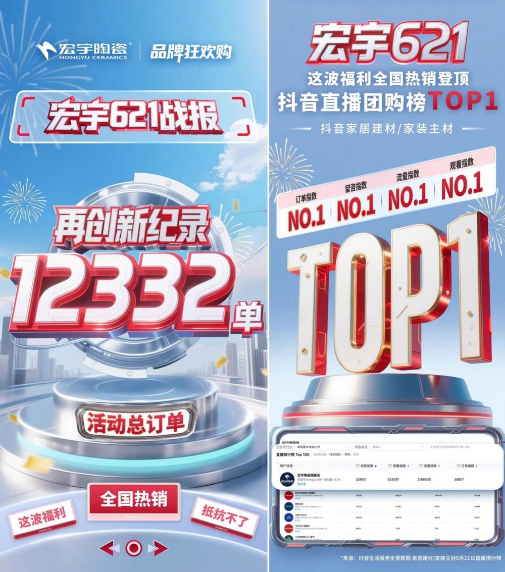 双向发力下,领军品牌宏宇陶瓷的进阶之,更以年轻化计谋为焦点轴,印证其厂商协同机制取曲播模式的成熟高效。曲击需求。登顶多项抖音家居建材类TOP1。