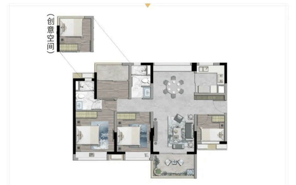 到富贵取静谧均衡的糊口圈;阳台延长至次卧,